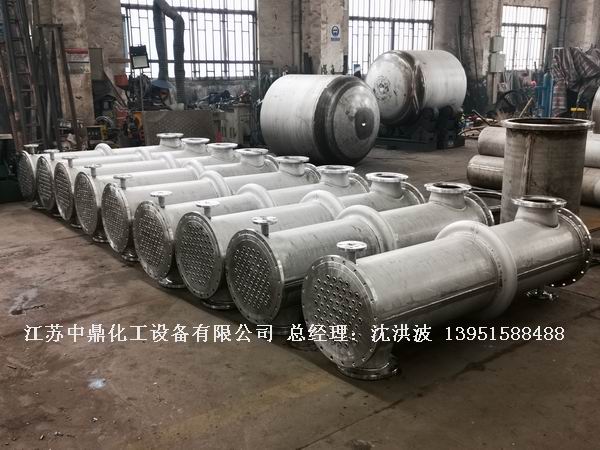 江西某制藥企業(yè) 12臺(tái) 100平方不銹鋼翅片式冷凝器(立式)制造現(xiàn)場(chǎng)