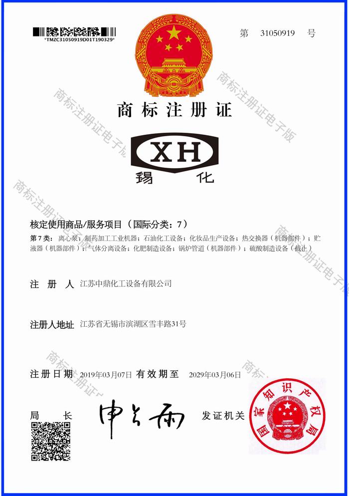 【中鼎喜訊】2019年4月8日經(jīng)過多年努力,中鼎企業(yè)終于拿到曾經(jīng)由1985年12月04日無(wú)錫縣化工設(shè)備廠注冊(cè)的“錫化”牌商標(biāo)的圖形商標(biāo),圓滿完成“錫化”老品牌的有效保護(hù)。為中鼎企業(yè)樹立品牌打下堅(jiān)實(shí)的基礎(chǔ)!