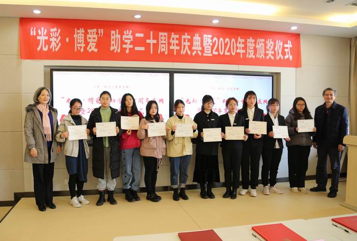 活動伊始,婁國棟致辭,對“光彩·博愛”獎助學(xué)金設(shè)立20周年來為江南大學(xué)的發(fā)展和人才培養(yǎng)給予的有力支持表示由衷地感謝。隨后,特別貢獻獎獲得者代表:沈洪波 在交流中表示,“光彩·博愛”獎助學(xué)金的設(shè)立,希望同學(xué)們能夠在受助的基礎(chǔ)之上,常懷揣感恩之心,傳遞正能量,成為國家之棟梁。許偉英在致辭中表示,“光彩?博愛”活動20年的堅持難能可貴,更是一種事業(yè)心和責(zé)任感的表示,希望受助學(xué)子能夠樹立遠(yuǎn)大理想,做富有擔(dān)當(dāng)?shù)男聲r代青年,以優(yōu)異的成績回報社會??姼鶎氃谥v話中指出,“光彩?博愛”獎助學(xué)金的堅持,體現(xiàn)了中華民族捐資助學(xué)的傳統(tǒng)美德,也希望受助學(xué)子能夠努力奮斗,創(chuàng)造自己的精彩人生。隨后由無錫市私營個體經(jīng)濟協(xié)會、無錫市民營企業(yè)家關(guān)心下一代工作委員會、人文學(xué)院、藥學(xué)院、校教育發(fā)展基金會共同簽訂2021年資助協(xié)議,并為2020年度獲得資助的30名同學(xué)頒獎,最后與會嘉賓和同學(xué)們共同演唱《感恩的心》并合影留念。
